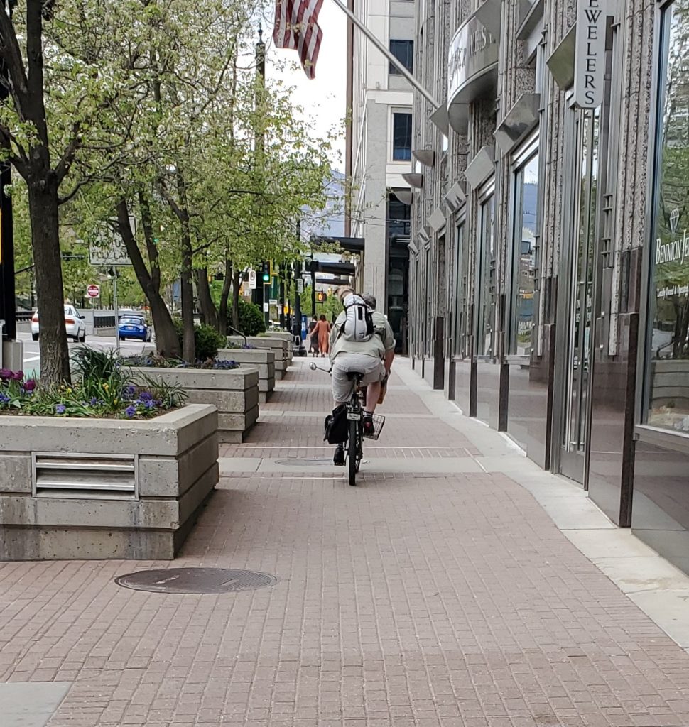 I don’t want to kick a horse while it’s down, and mix other metaphors like my dad would do just for fun, but I am grieving at his loss. I miss the guy so much. So it’s no surprise that on Sunday, as I was walking through downtown Salt Lake City, I would see a man on a bike that would remind me of my dad. He didn’t look like my dad, and my dad wasn’t too fond of riding a bike, but there was something… there was something hidden deeply in my memory, yet it was so obvious. It was the dog on the man’s back! After remarking that it seemed a little weird and maybe unsafe (yep, I’m a PI attorney through and through), I quickly realized that I will never see a dog on anything in the same way again. And if you knew Fred, hopefully you won’t either.